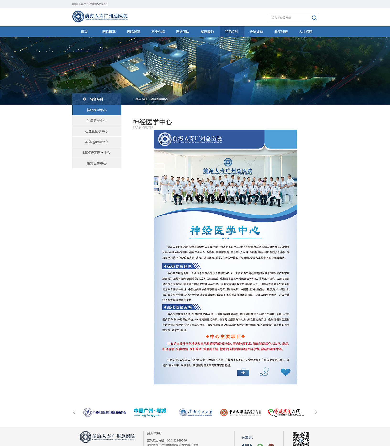 前海人壽廣州總醫(yī)院作為前海人壽醫(yī)養(yǎng)健康板塊的旗艦醫(yī)院,是經(jīng)廣州市衛(wèi)健委批準(zhǔn)設(shè)立的綜合型醫(yī)院,增城區(qū)委、區(qū)政府重點(diǎn)招商引資項(xiàng)目,是前海人壽保險(xiǎn)股份有限公司按照國(guó)家三級(jí)醫(yī)院標(biāo)準(zhǔn)全資興建,集預(yù)防、保健、診療、科研、教學(xué)、康養(yǎng)于一體的健康醫(yī)療綜合體。醫(yī)院總占地面積9.8萬(wàn)平方米,建筑面積47萬(wàn)平方米,設(shè)置40余個(gè)臨床科室、84間門診診室、規(guī)劃病床1800張。醫(yī)院計(jì)劃重點(diǎn)打造神經(jīng)醫(yī)學(xué)中心、消化道疾病中心、心血管醫(yī)學(xué)中心、MDT睡眠醫(yī)學(xué)中心、康復(fù)醫(yī)學(xué)中心、腫瘤醫(yī)學(xué)中心等六大醫(yī)學(xué)中心,成為廣州乃至廣東地區(qū)設(shè)施完善、設(shè)備先進(jìn)的三級(jí)綜合醫(yī)院。