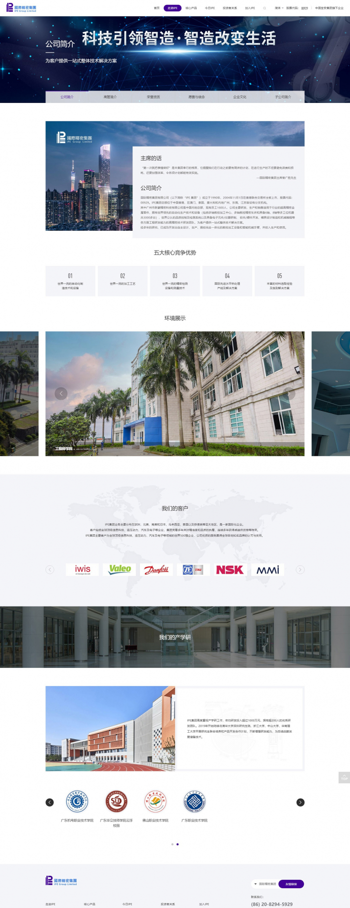 國(guó)際精密集團(tuán)有限公司(以下簡(jiǎn)稱“IPE 集團(tuán)”)成立于1990年,2004年11月1日在香港聯(lián)合交易所主板上市,股票代碼:00929。IPE集團(tuán)總部位于中國(guó)香港,在澳門、泰國(guó)、意大利和內(nèi)地廣州、東莞、江蘇皆設(shè)有分支機(jī)構(gòu)。